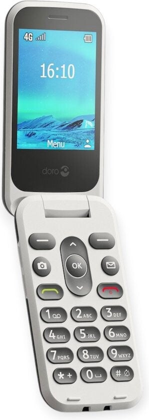 De Doro 2880 is een gebruiksvriendelijke 4G-telefoon voor mensen die liever een model hebben dat openklapt om per ongeluk bellen te voorkomen. Een extra beeldscherm toont de tijd en dag en geeft nummers weer zonder dat u de telefoon open hoeft te klappen. De breed opgezette toetsen maken bellen en berichten versturen eenvoudiger en de telefoon heeft ook sneltoetsen voor het gebruik van de camera en berichten.